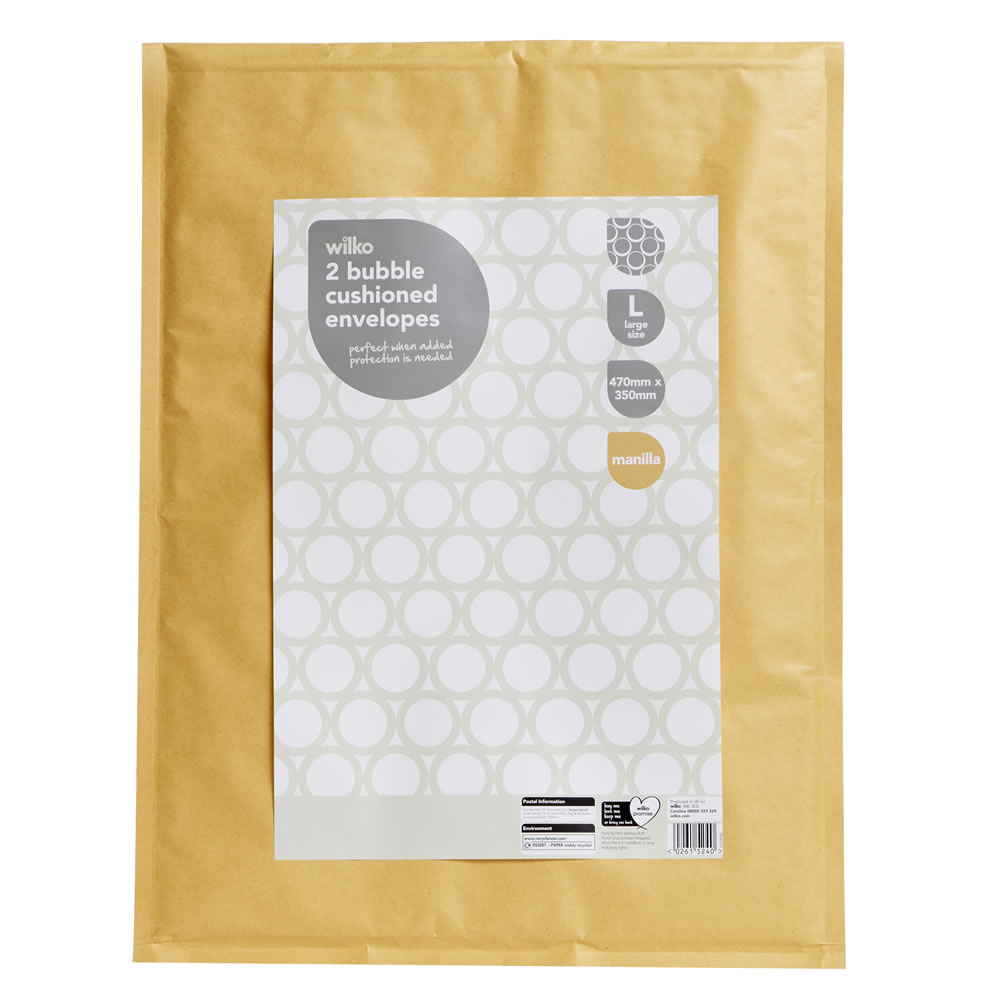 Wilko 7K Manilla Bubble Cushioned Envelopes Large 470 x 350mm 2 pack